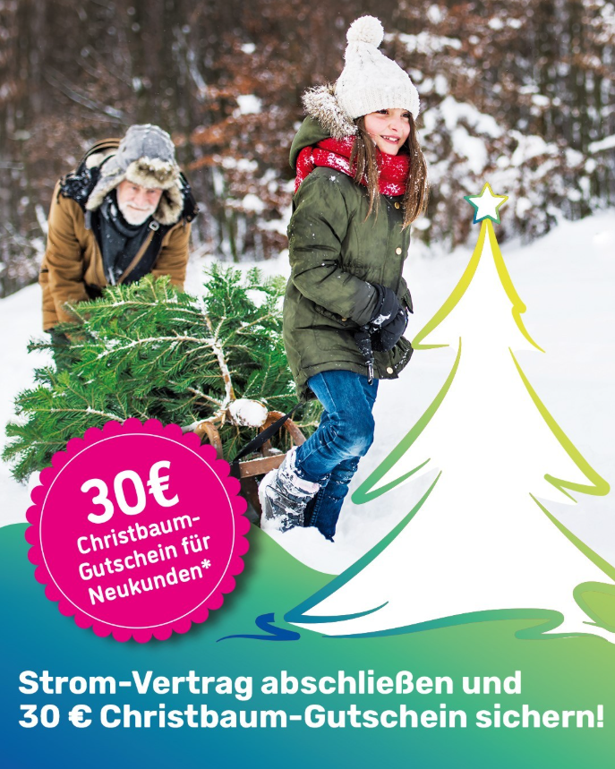 Wechselt jetzt zu uns und sichert euch einen 30 € Christbaum-Gutschein. So lässt sich das Zuhause pünktlich zum Fest nicht nur gemütlich, sondern auch nachhaltig beleuchten.