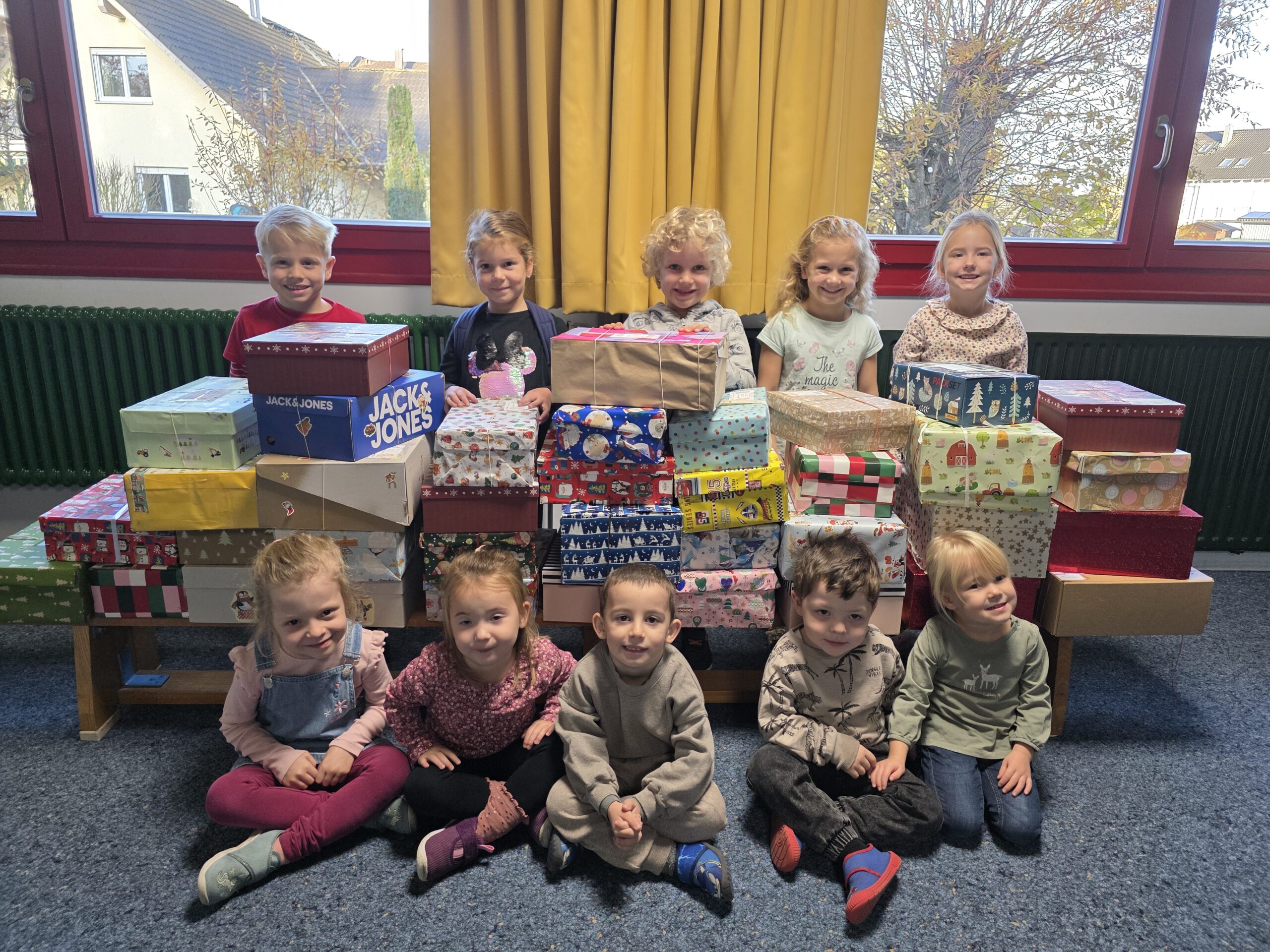 Großartige Spendenbilanz im Kindergarten St. Elisabeth in Esting: 40 Geschenkpakte haben die Kindergartenkinder, Eltern und Erzieherinnen dieses Jahr für die Aktion „Humedica – Geschenk mit Herz“ gepackt. Die bunt beklebten Schuhkartons sind randvoll mit Spielsachen, Kuscheltieren, Schreibwaren, Süßigkeiten und Hygieneartikeln wie Zahnbürsten und Shampoo. In diesem Jahr gehen die liebevoll gepackten Geschenkpakete an bedürftige Kinder in Bayern, im Kosovo, in der Uk¬raine, in Albanien, in Rumänien und in der Republik Moldau.
