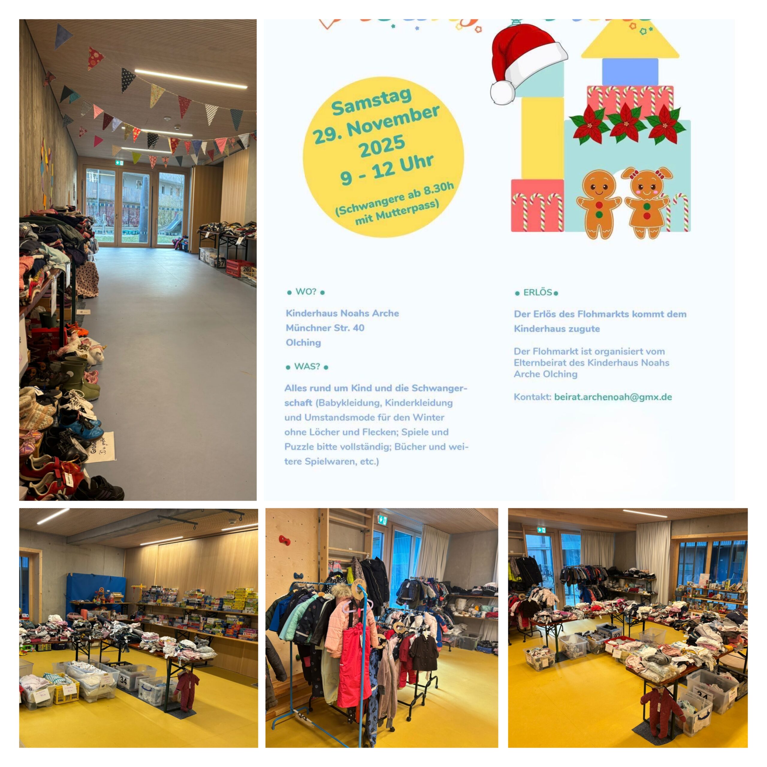 „Morgen wird schlechtes Wetter? Nikolaus und Weihnachten steht auch schon bald vor der Tür? – wir haben die Lösung! Morgen (29.11.2025) findet unser Floh- und Adventsmarkt im Kinderhaus Noahs Arche (Münchner Straße 40 in Olching) statt.