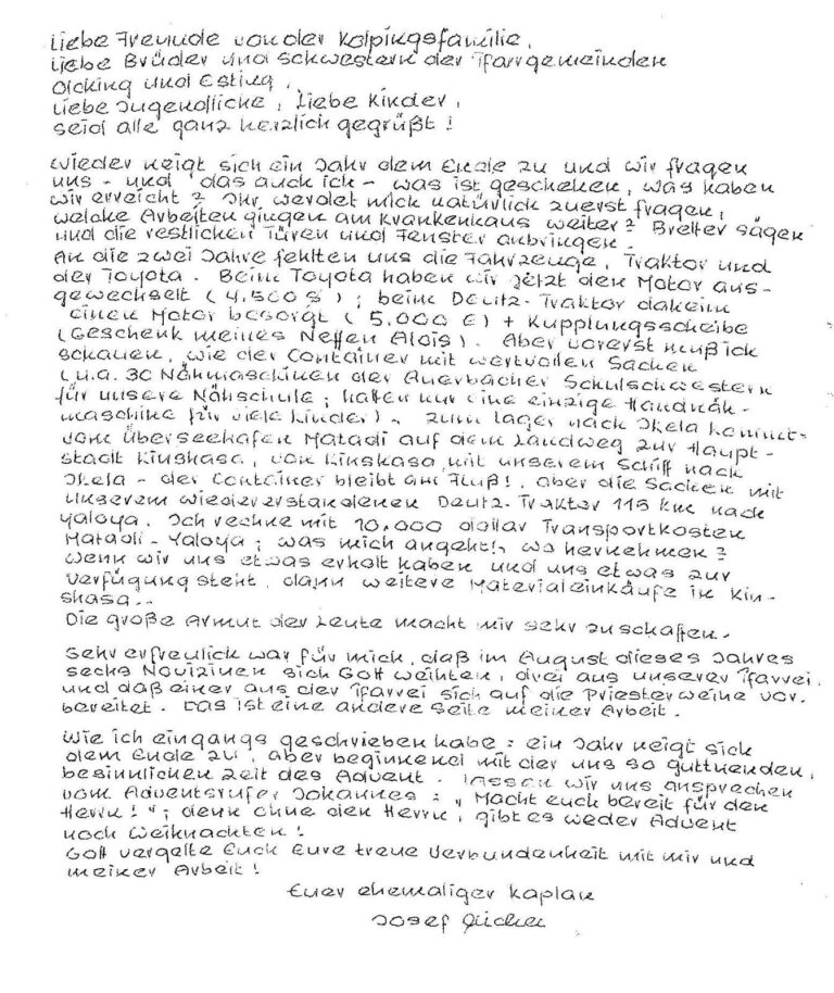 | Darin geht Aicher auf die Herausforderungen in seiner Pfarrei ein. Vor allem die große Armut der Menschen im Kongo macht ihm große Sorgen, wie er betont. |