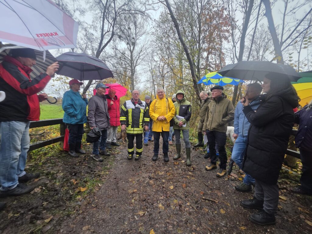 Beim kurzfristig anberaumten Ortstermin um 16:00 Uhr wurden die rund 50 anwesenden Bürgerinnen und Bürger umfassend über die Lage informiert. Rainer Saalfeld und Sepp Gigl erklärten die Hintergründe der Maßnahme und beantworteten Fragen aus der Bevölkerung.