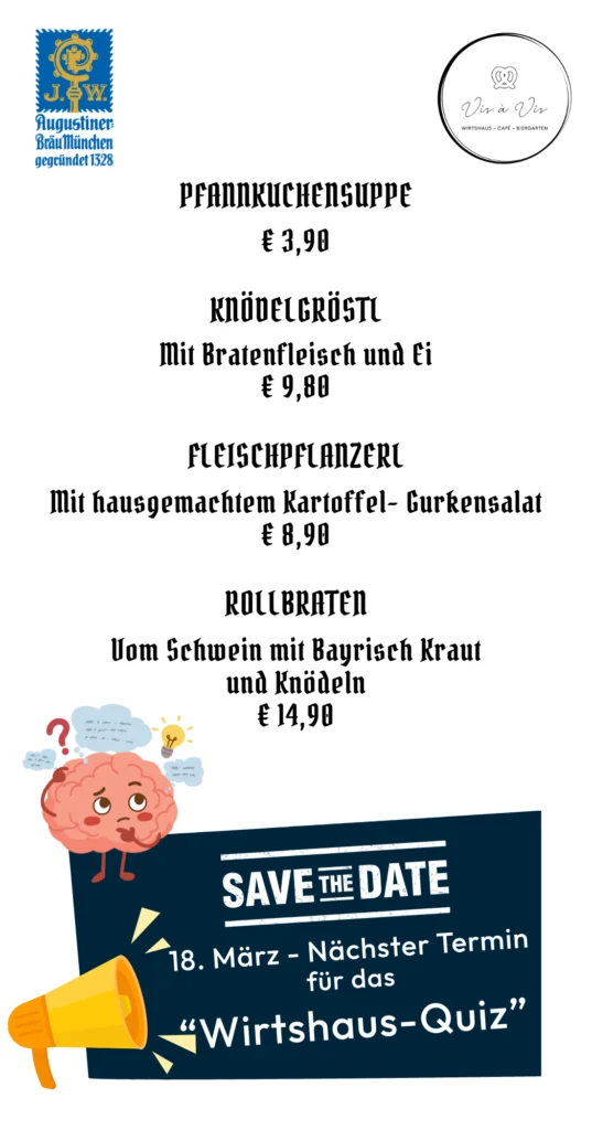 Aktuelle Tageskarte im Vis a Vis in Geiselbullach