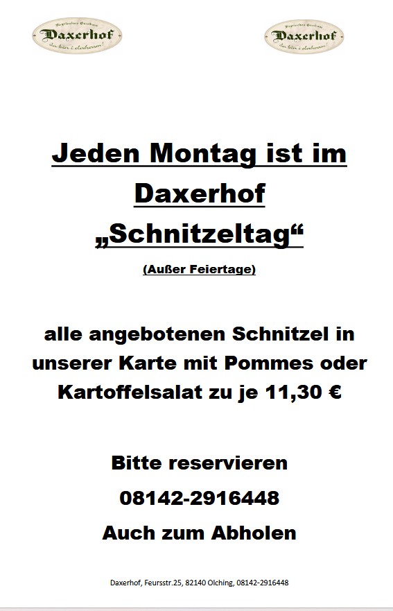 Am Montag ist wieder Schnitzeltag im Daxerhof