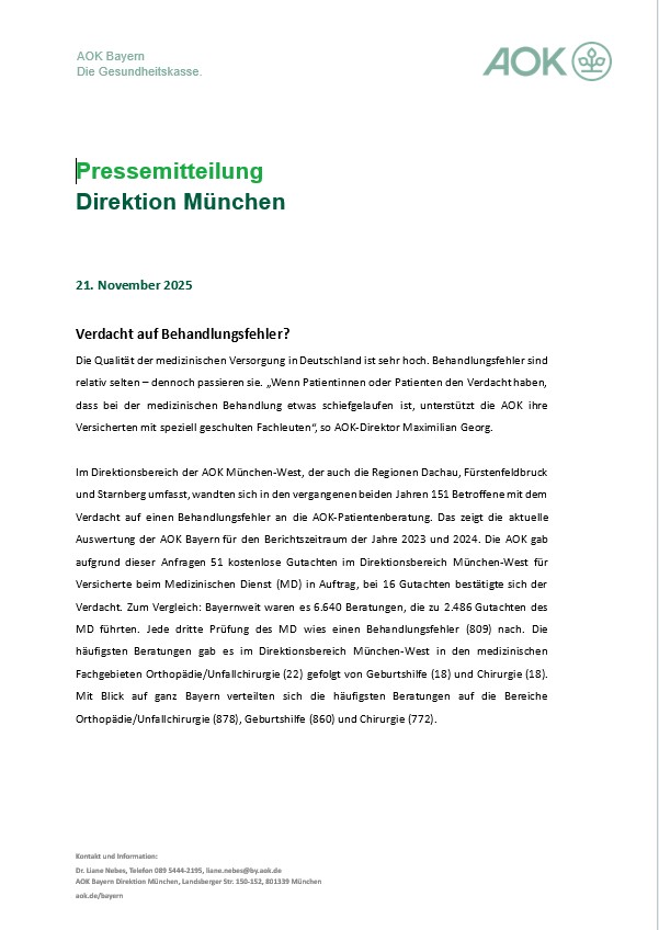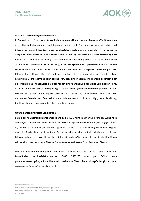 Behandlungsfehler sind relativ selten, im Zweifel unterstützt die AOK-Patientenberatung.