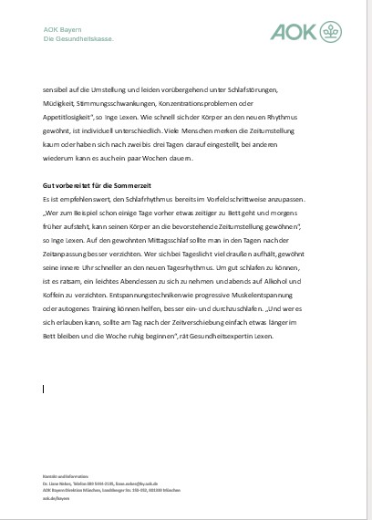 AOK-Pressemitteilung: Sommerzeit – Zeitumstellung