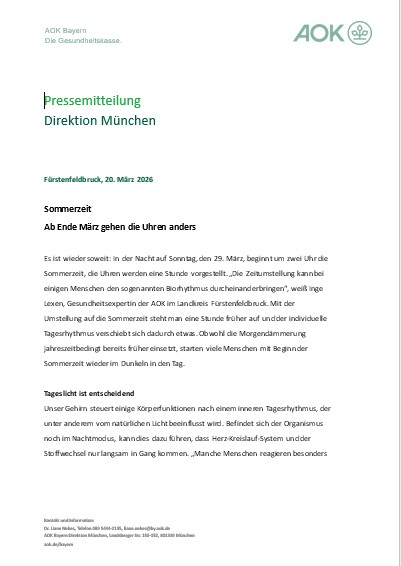 AOK-Pressemitteilung: Sommerzeit – Zeitumstellung