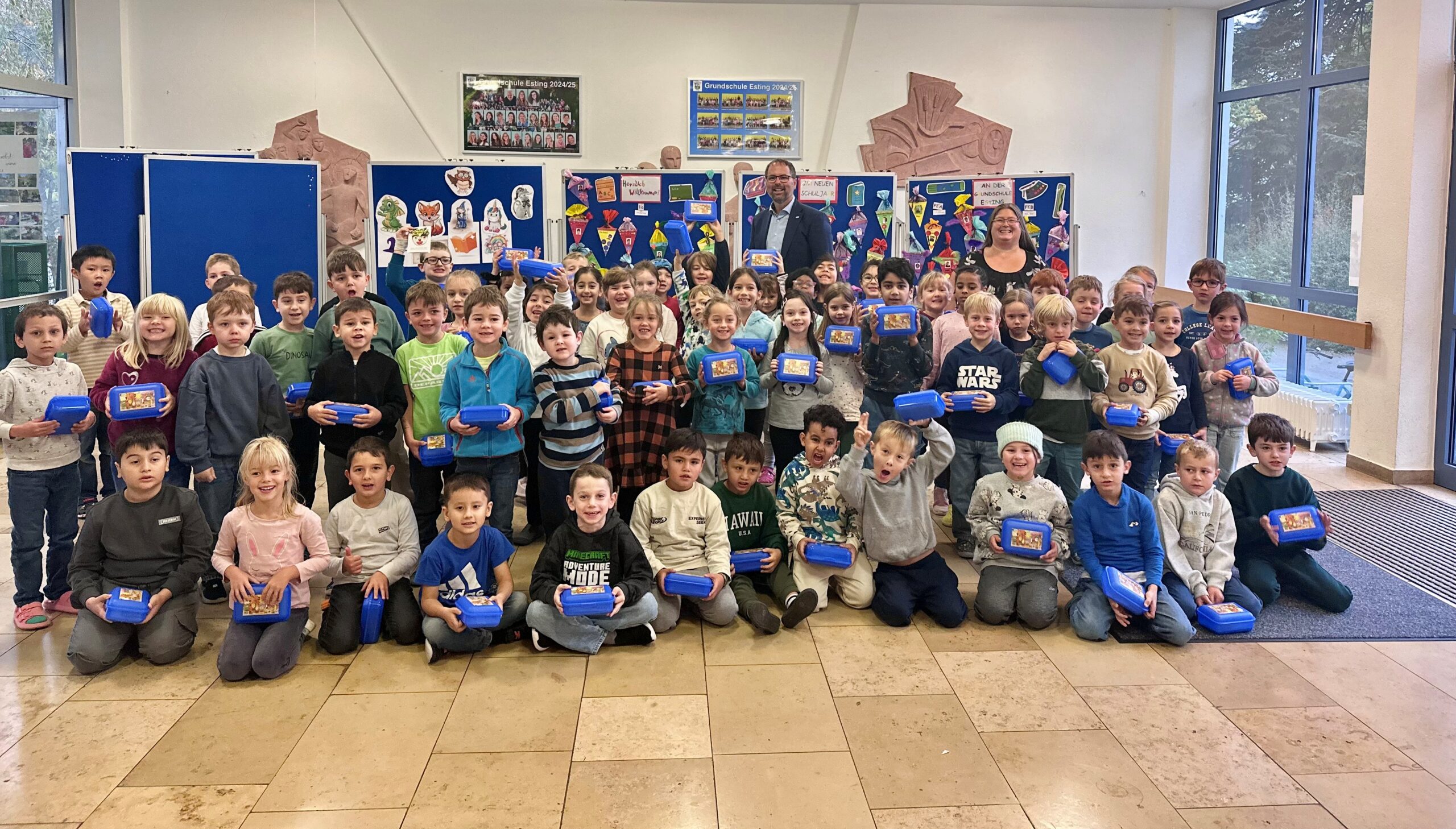 SchülerInnen der ersten Klassen an der Grundschule Esting haben von Bürgermeister Magg