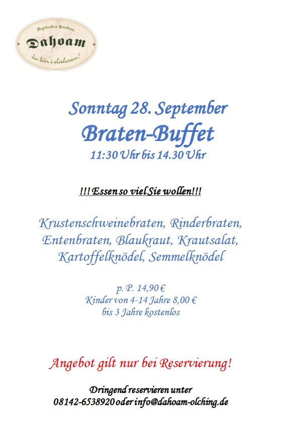 Bratenbuffet im DAHOAM am Sonntag