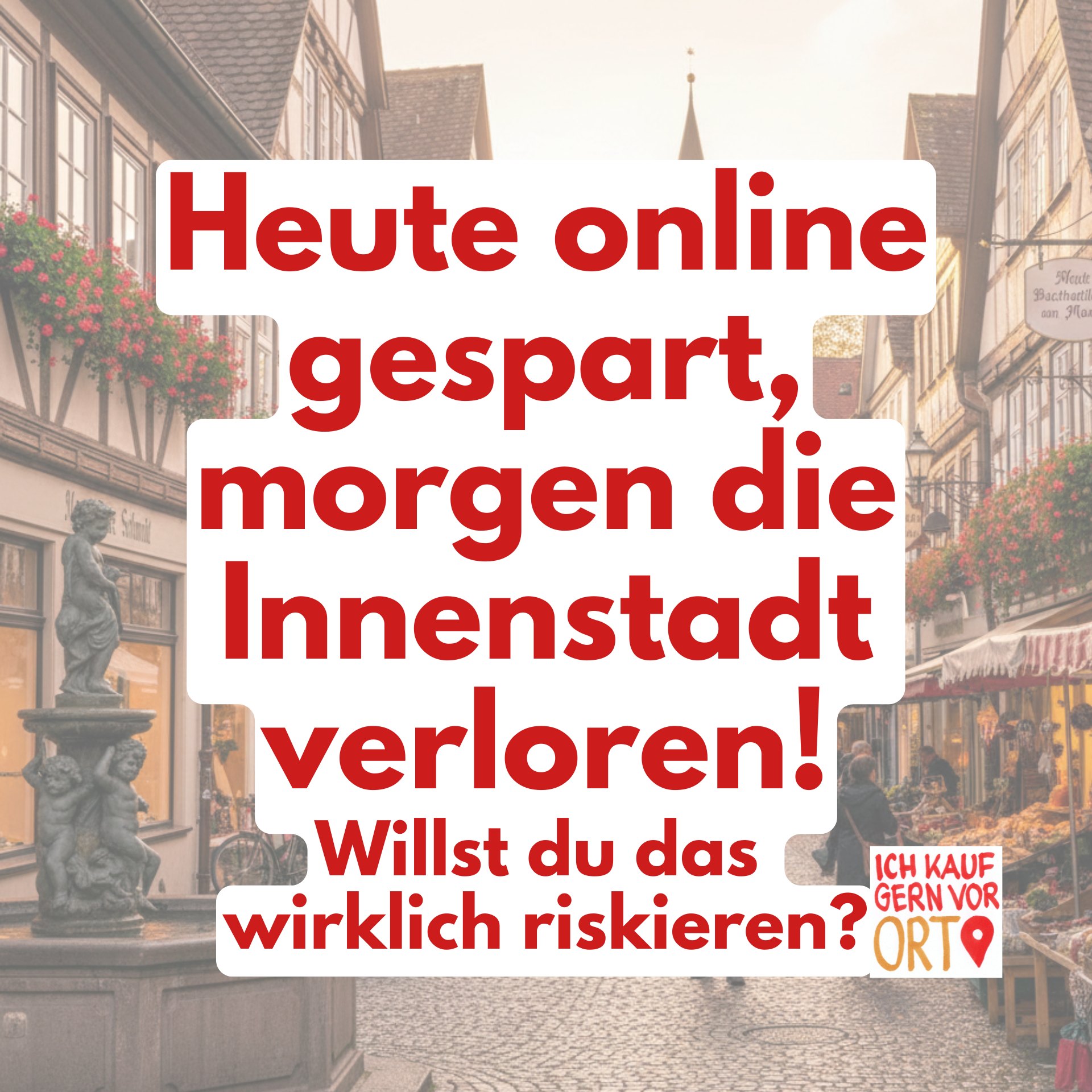 Online locken weiter die vermeidlichen Rabatte der Online-Riesen, aber den wahren Preis zahlt am Ende unsere Innenstadt: geschlossene Läden, weniger Begegnungen, weniger Leben. Jeder Kauf bei anonymen Riesenkonzernen stärkt deren Dumpingpreise und schwächt die, die fair vor Ort arbeiten.
