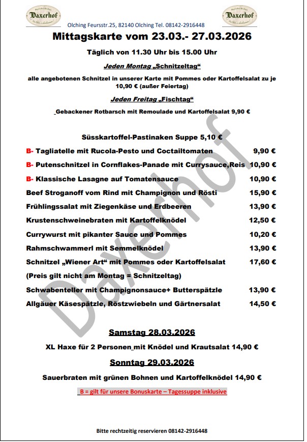 Daxerhof – Wochenkarte vom 23.03. – 27.03.
