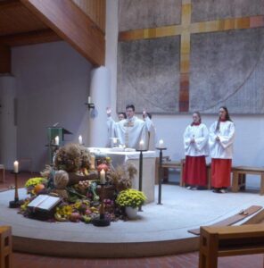 Bereits am Vorabend des Erntedankfestes fand in der Olchinger Kirche ein Abend der Barmherzigkeit mit dem Münchner Priesterseminar statt (Bericht folgt). Am Sonntag-Morgen feierte Kaplan Sebastian König in der Filialkirche St. Stephanus