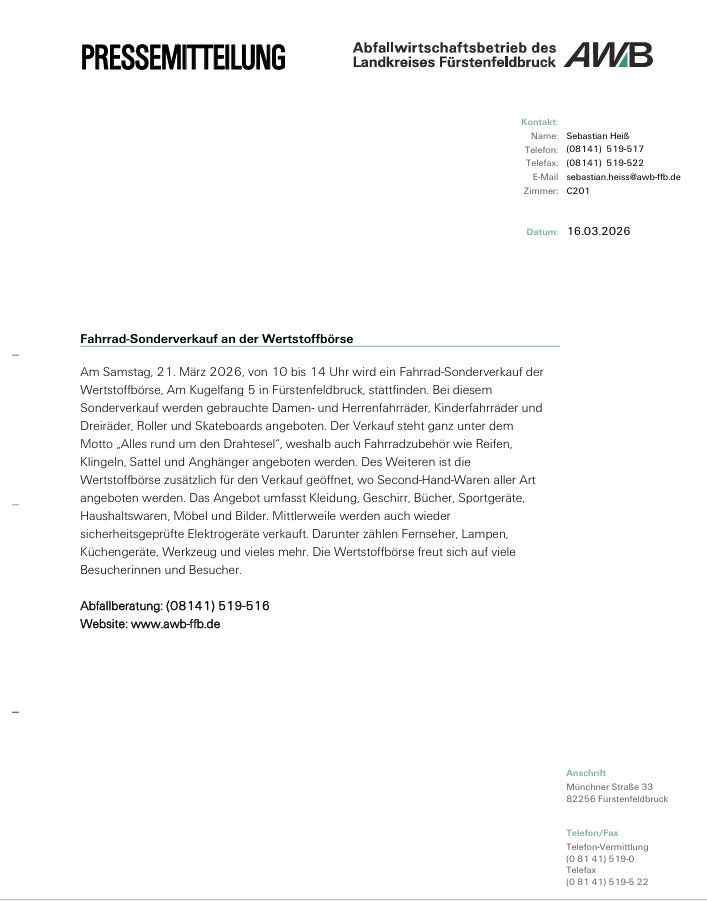 Fahrrad-Sonderverkauf an der Wertstoffbörse