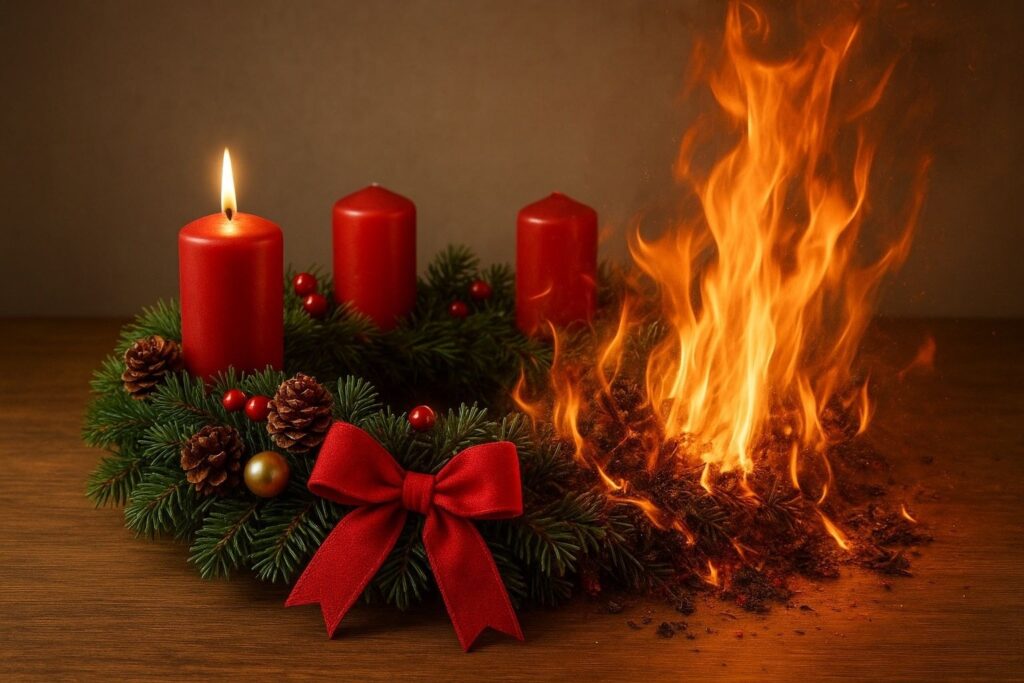 Ein gemütlicher Moment kann in Sekunden zur Gefahr werden. Adventskränze mit echten Kerzen sind wunderschön – aber auch brandgefährlich.
