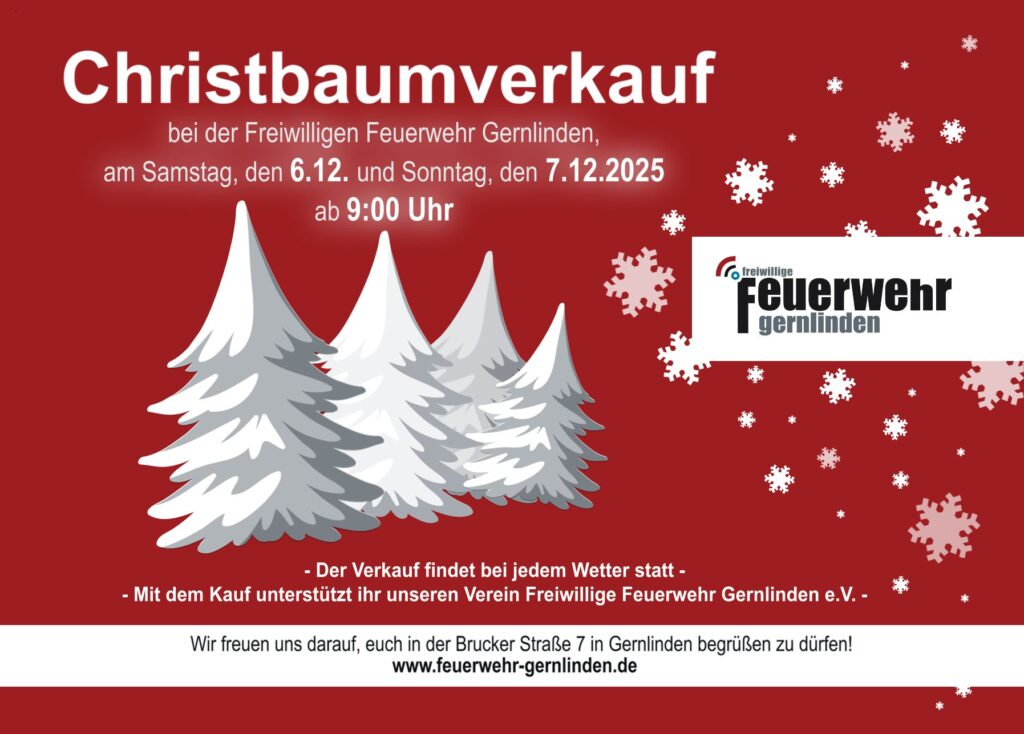 Kommt vorbei, freut euch auf frisch geschlagene Bäume und unterstützt gleichzeitig eure Feuerwehr – wir freuen uns auf euch!