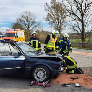 Am Nachmittag des Ostersonntags wurden wir gemeinsam mit der Feuerwehr Gernlinden zur Anschlussstelle B471 gerufen. An der Hochbrücke waren zwei PKW zusammengestoßen.
