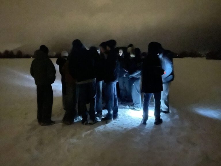 | Ein Highlight war für viele die Nachtwanderung durchs Moor. Im Dunkeln bei Eis und Schnee in der Weite der Natur unterwegs zu sein war ziemlich aufregend, vorallem weil es die Sage der Moorgeister gab, die auf den Google Bewertungen der Jugendherberge schon auf der Hinfahrt von den Firmlingen gelesen wurde. |