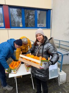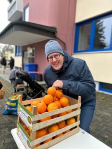Heute Vormittag waren wir an der Olchinger Tafel und haben frische Orangen an die