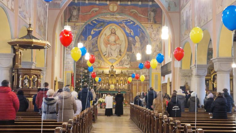 | Anschließend ließen die Mitglieder der Faschingsvereine die bunten Luftballons in den Himmel steigen, die zuvor die Kirchenbänke geschmückt hatten. |