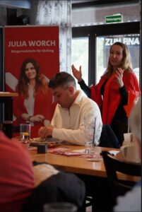 Worch sprach sich unter anderem dafür aus, als gewählte Bürgermeisterin Maßnahmen gegen nicht vermieteten Leerstand zu prüfen, das Olchinger Stadtmarketing nachhaltig neu auszustatten, die in städtischer Hand befindlichen Immobilien zu behalten und den Gewerbe-Hebesteuersatz auf dem aktuellen Stand zu lassen. Neben der bereits feststehenden und geplanten Ansiedelung großer Firmen auf dem Stadtgebiet befürwortete sie aber auch die Förderung von einem Mix an mittelständischen Betrieben. „Gemeinsam stark – das ist nicht zufällig mein Wahlkampf-Motto“, sagt Worch, „ich bin der festen Überzeugung, dass sich eine prosperierende Wirtschaft und eine sozial gefestigte Kommune gegenseitig bedingen.“