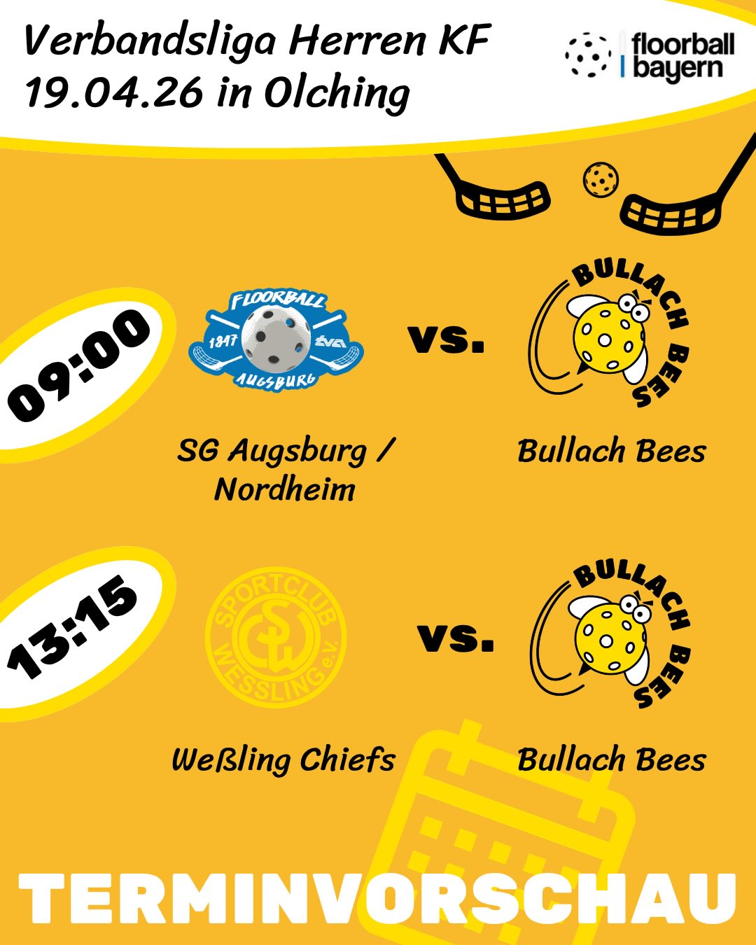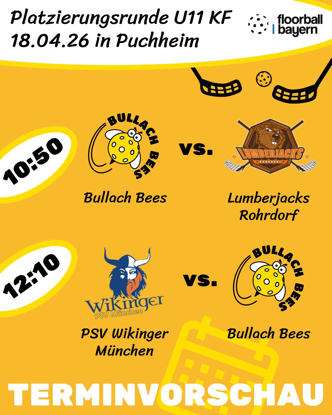 Vor dem Heimspieltag der Herren KF am Sonntag in #olching muss am Samstag noch unsere U11 ran. Der Weg ist aber auch überschaubar, da es ins benachbarte #puchheim geht, wo das Team auf @lumberjacks.rohrdorf und @psvmuenchen trifft. Wir hoffen, ihr schaut mal vorbei! 💛🐝🤞