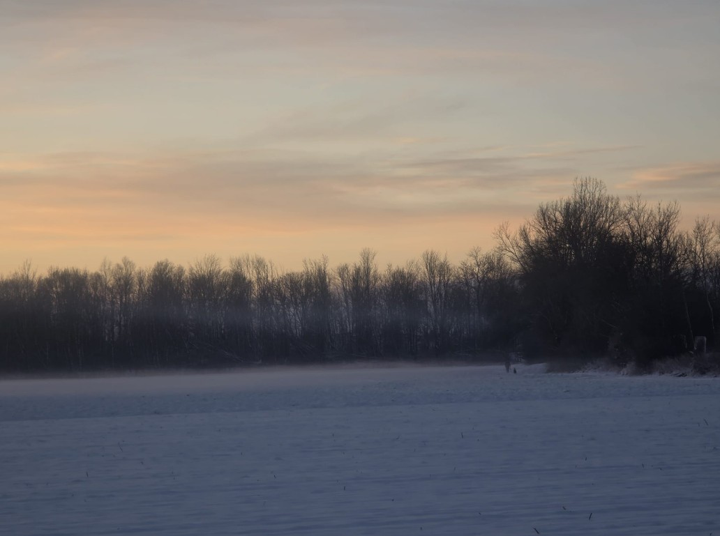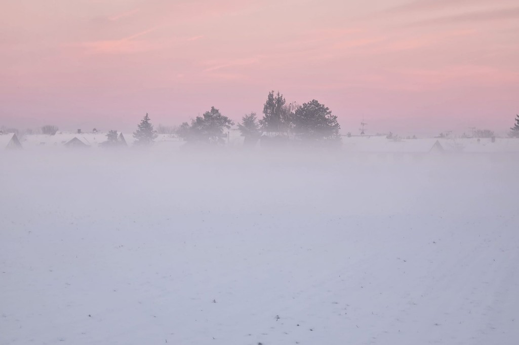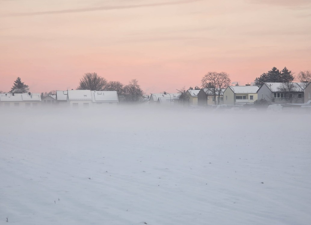 Ein seltener Anblick – neuer Schnee und auf ziehender Nebel