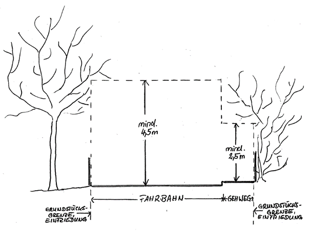 Über Gehwegen ist das Lichtraumprofil auf einer Höhe von 2,5 m, über Fahrbahnen auf einer Höhe von 4,5 m von jeglichem Bewuchs freizuhalten. Auch Hecken, die zwar im unteren Bereich an der Grenze enden, im oberen Bereich in den Gehweg ragen, stellen eine Verkehrsgefährdung dar, da auch hier nicht die gesamte Gehwegbreite für den Fußgängerverkehr zur Verfügung steht. Bedenken Sie bitte auch, dass nasses oder schneebedecktes Laub weiter nach unten hängt. Schneiden Sie Bäume im Bereich der Straßenbeleuchtung frei und stellen Sie auch die freie Sicht auf Verkehrszeichen und Straßennamensschilder sicher.