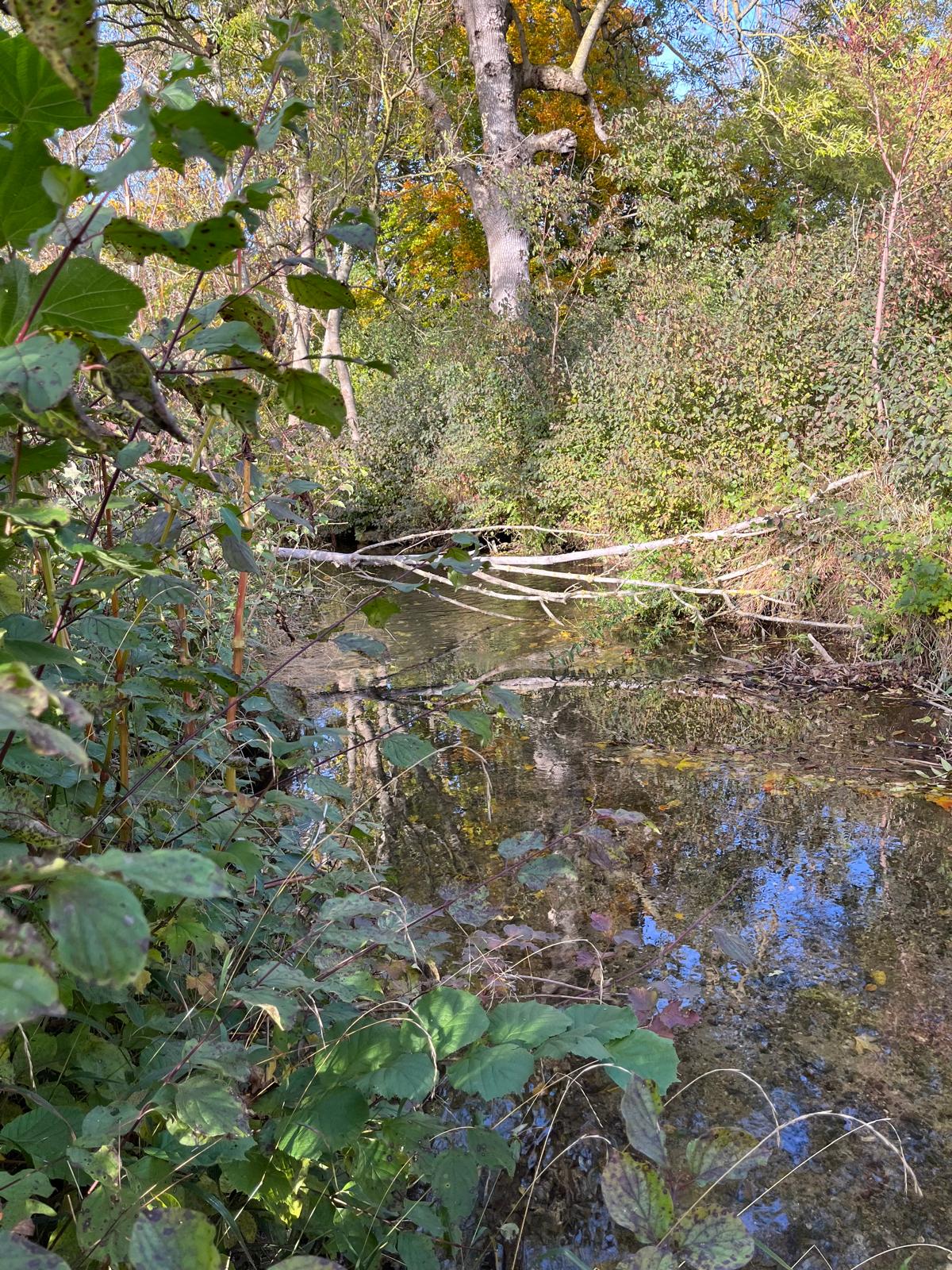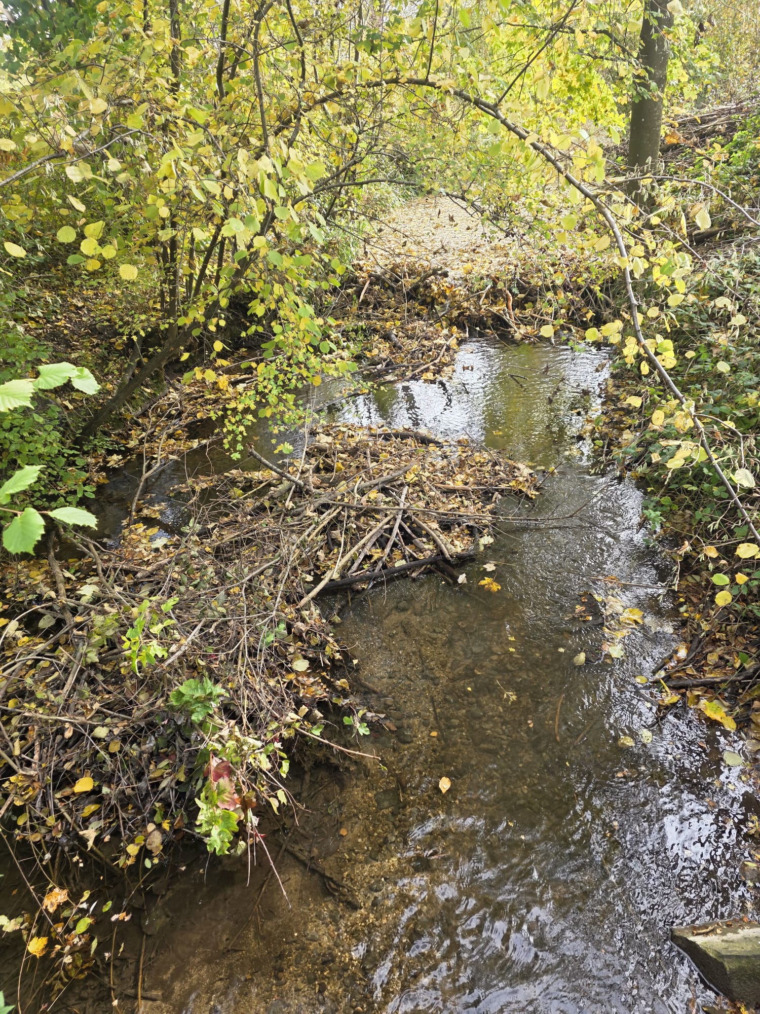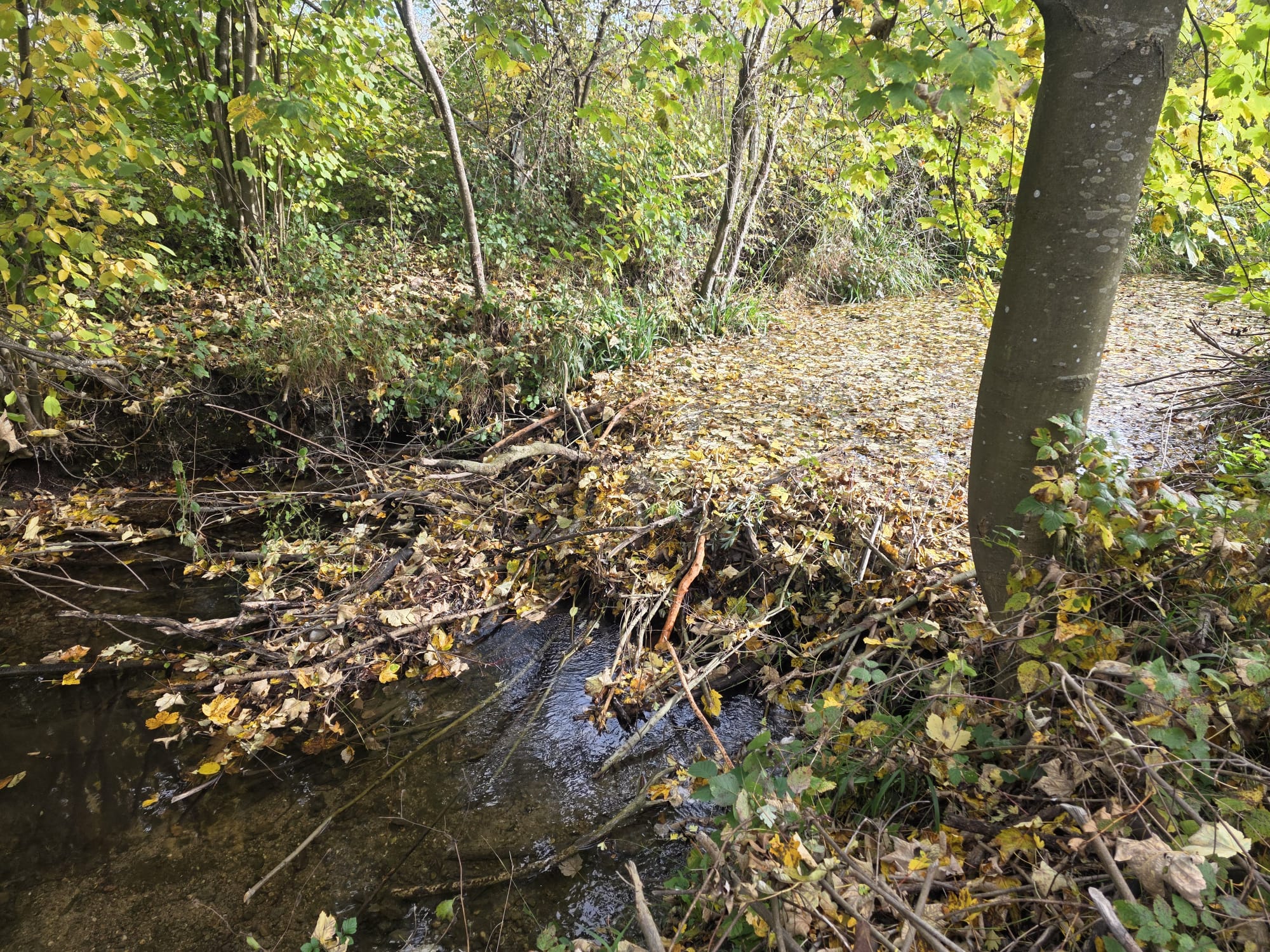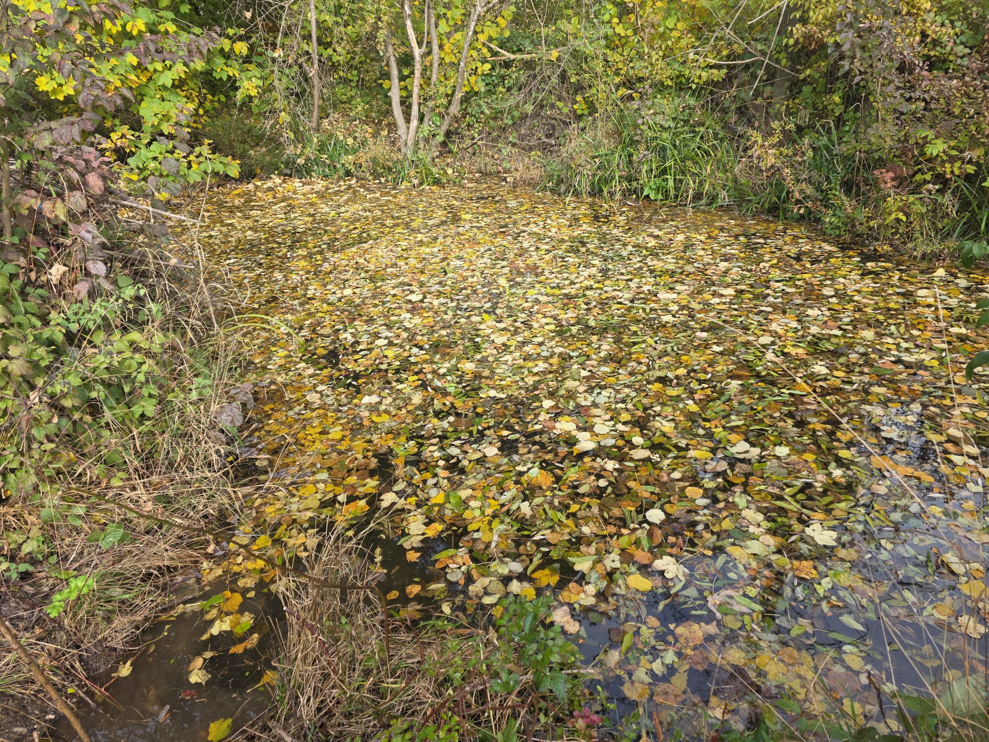 Hier nochmals die aufgestaute Wasserfläche mit dem herbstlichen Blätterteppich