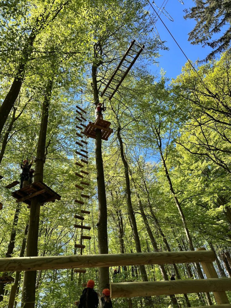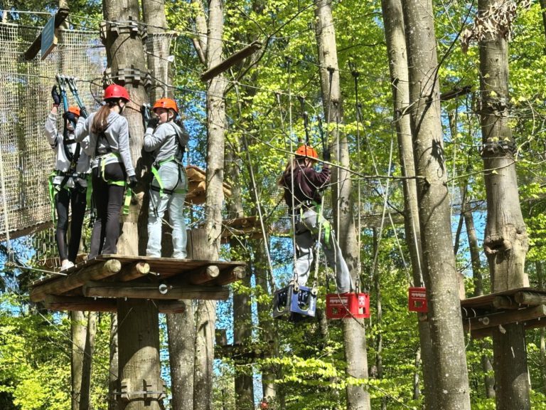 | Zwischen Baumwipfeln und Seilparcours setzten sich die Jugendlichen auf ganz besondere Weise mit zentralen Lebensthemen auseinander: eigene Grenzen erkennen, Ängste wahrnehmen und Vertrauen entwickeln – in sich selbst, in andere und Gott. |