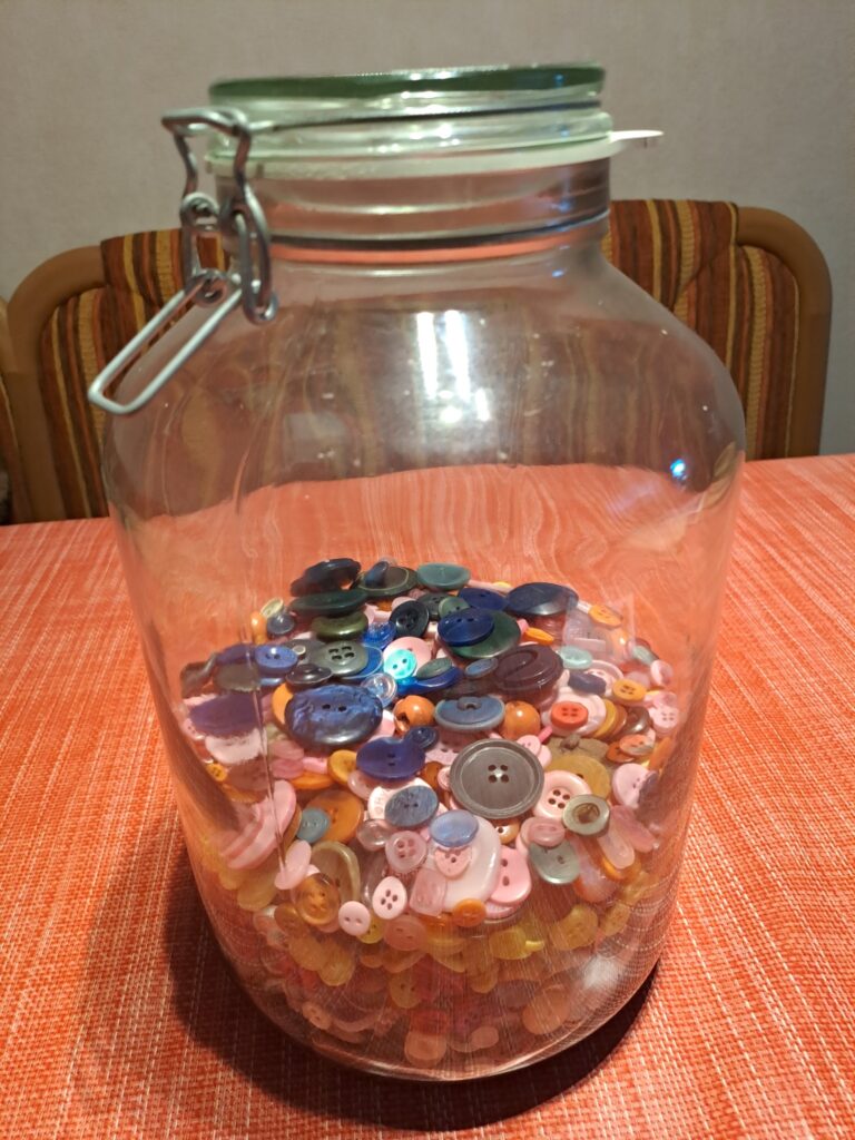 An unserem Aktivtag haben wir für die Teilnehmerinnen und Teilnehmer ein buntes und spannendes Programm zusammengestellt. Unter anderem die Knöpfe schätzen, die in dem Glas sind. Das war offensichtlich gar nicht so leicht.