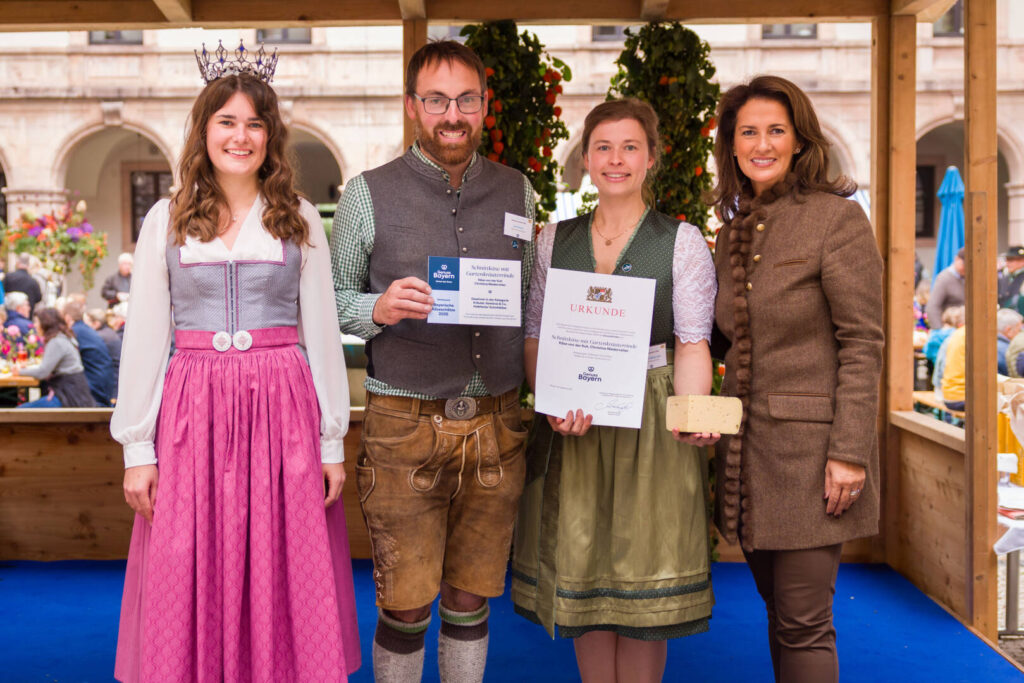Wenn die besten bayerischen Käsekreationen zum Wettbewerb „Bayerische Käseschätze gesucht!“ antreten, ist besonderer Genuss garantiert. Davon konnten sich Groß und Klein, Alt und Jung beim diesjährigen Käse-Genussmarkt im Schmuckhof des Bayerischen Staatsministeriums für Ernährung, Landwirtschaft, Forsten und Tourismus mit allen Sinnen überzeugen. Von den 57 eingereichten Käseproben haben es 19 besondere Käsespezialitäten aufs Treppchen geschafft. Bei der Auszeichnung der Preisträger sagte die Ministerin: „In allen Regionen unseres Landes gibt es viele außergewöhnliche kulinarische Genuss-Schätze, die darauf warten, entdeckt zu werden. Sie sind die besten Botschafter für die Vielfalt bayerischer Käsespezialitäten und den Genuss aus Bayern.“