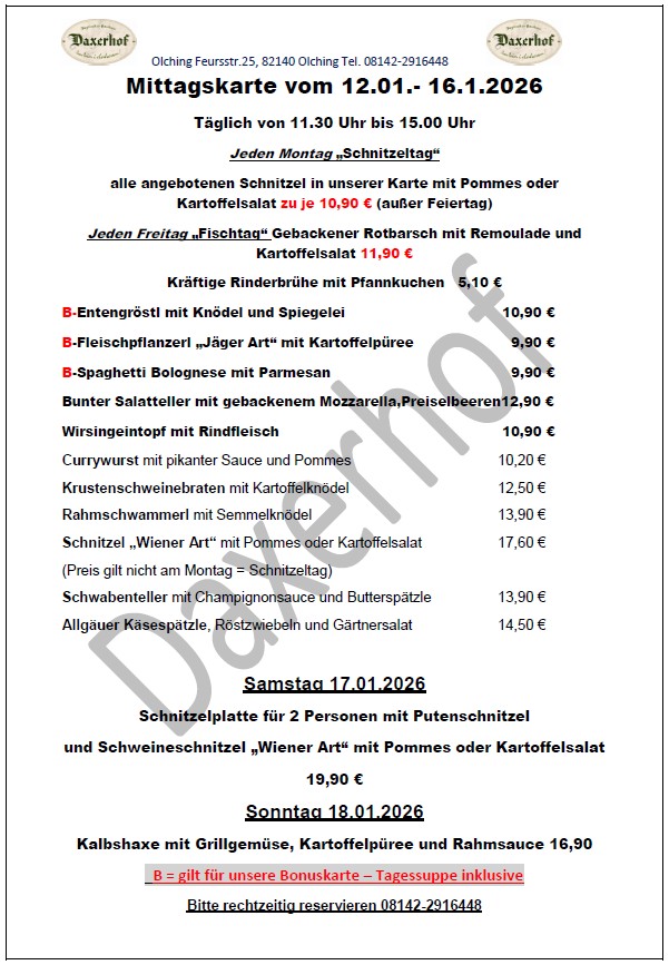 Mittags im Daxerhof ab dem 12.Januar 2026