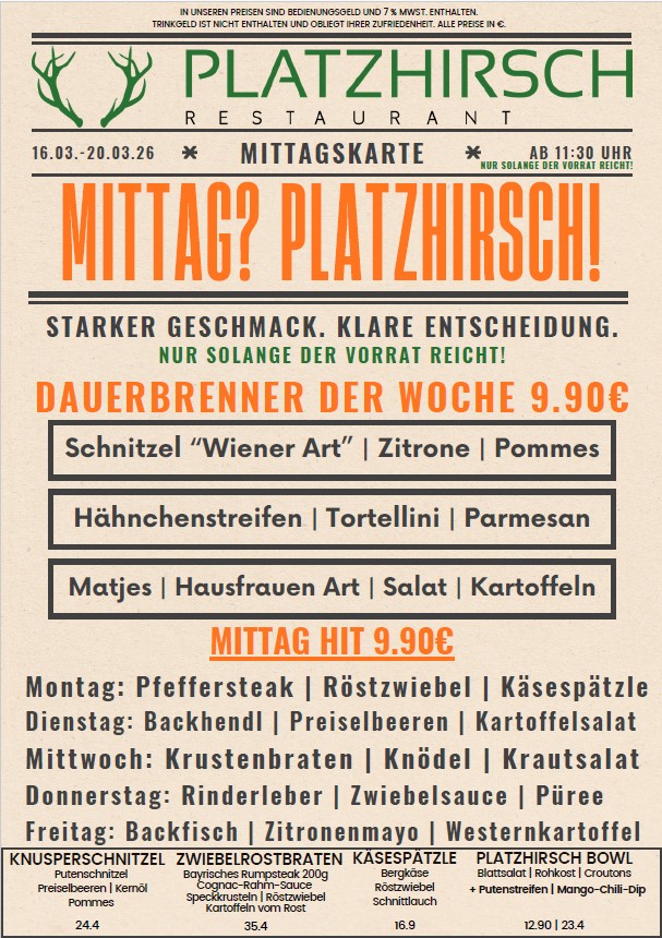 Mittags im Platzhirsch vom 16. bis zum 20.März 2026