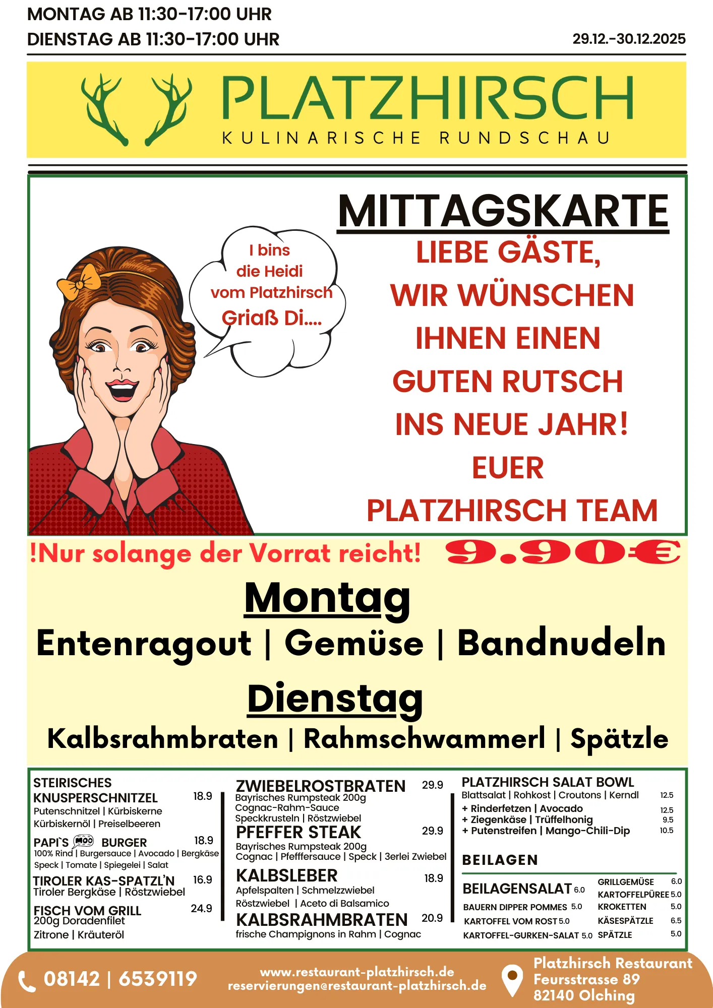 MITTAGSKARTE IM PLATZHIRSCH AM GOLFPLATZ IN OLCHING