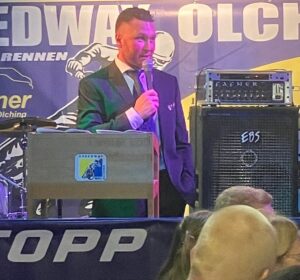 Geschenke gab es auch für unsere Funktionäre: Pflanzen und Schokolade für die Damen …und für die Männer jeweils einen „Hopfenkoffer“ – mit Bier von der Ettl-Brauerei! Dann hat die Band losgelegt: Four Miles West heizten mit „Speedway-Rock“ ein! …wie es sich gehört, bis in den Sonntag hinein!