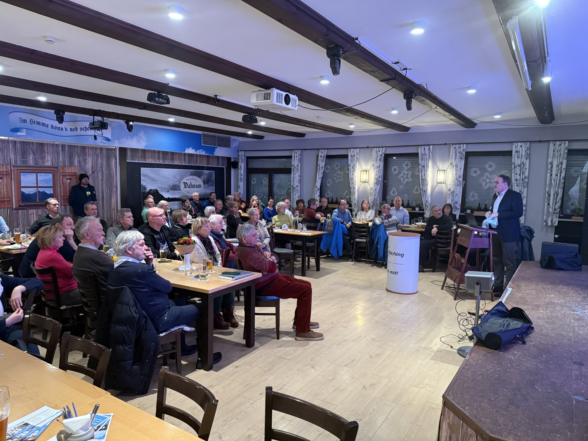 Olching, 17. Januar 2026 – Rund 70 interessierte Bürgerinnen und Bürger folgten trotz winterlicher Temperaturen der Einladung von Für Olching e.V. ins „Dahoam“, um das Programm des unabhängigen Bürgervereins für die Kommunalwahl am 8. März kennenzulernen. Unter dem Motto „Olching kann’s besser!“ zeigte der parteifreie Verein auf, wo er in der Stadt dringenden Handlungsbedarf sieht.