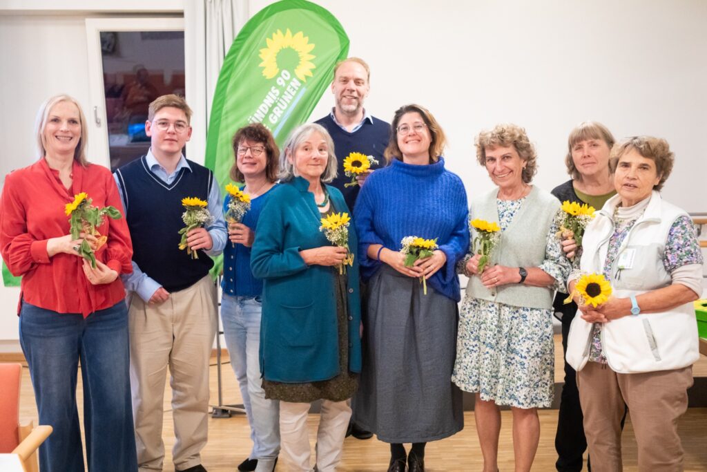Die ersten neun Plätze der neuen Stadtratsliste der Olchinger Grünen (von links nach rechts): Christiane Tupac-Yupanqui, Jakob Baiz, Christiane Hillebrand, Dr. Ingrid Jaschke, Christian Büngener, Laura Müller, Marina Freudenstein, Heide Kuckelkorn, Dr. Renate Vollertsen.