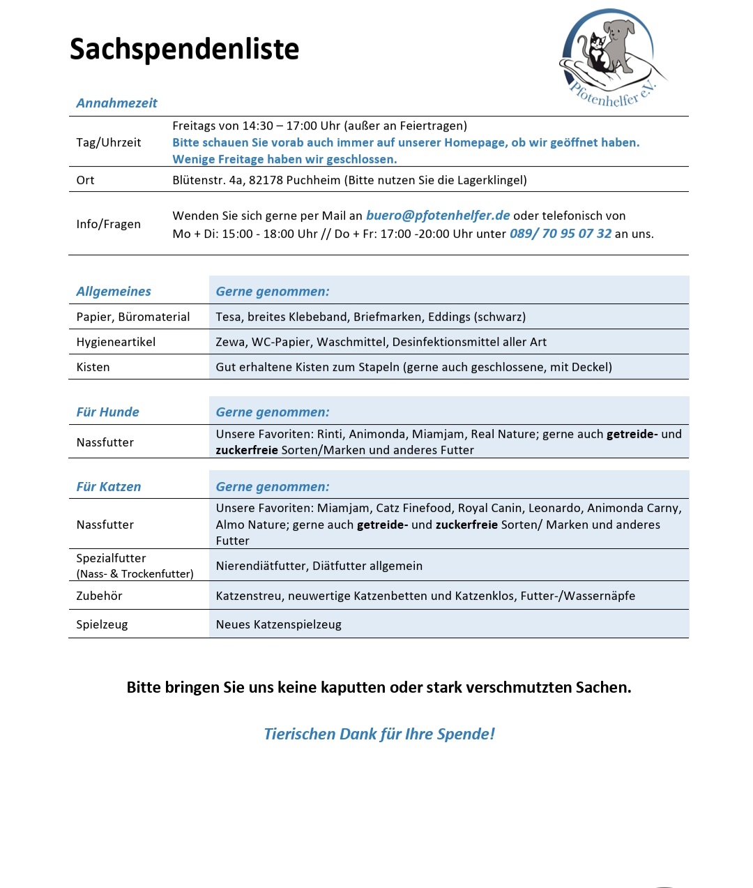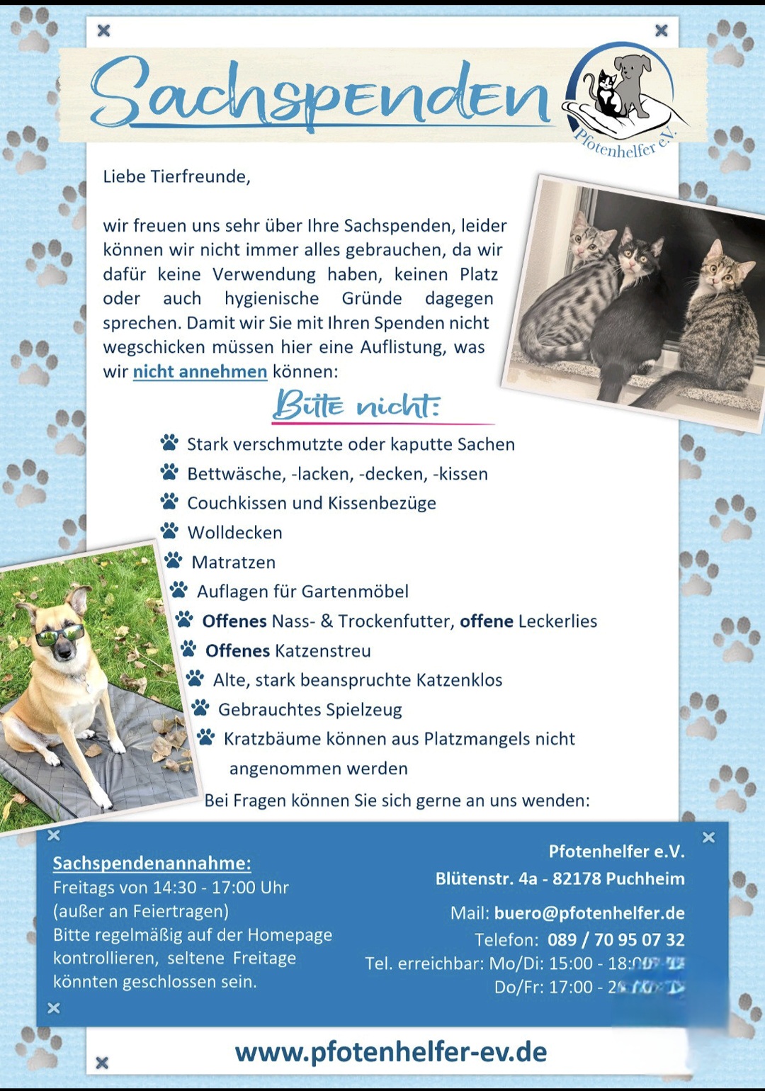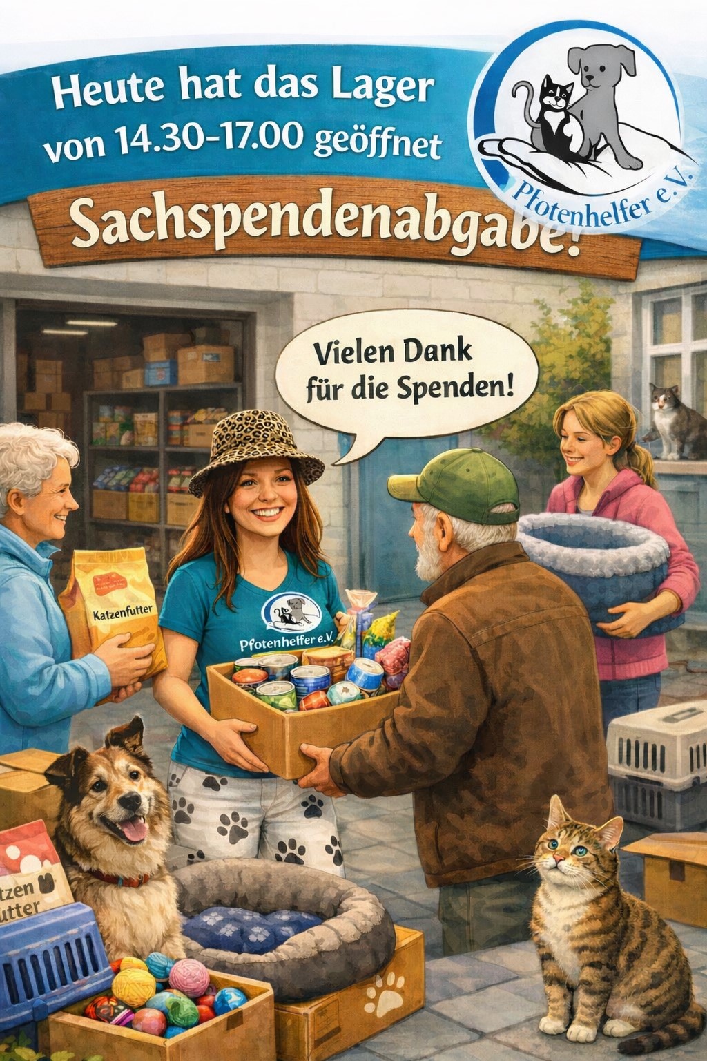 Pfotenhelfer- Lager für Sachspenden heute geöffnet