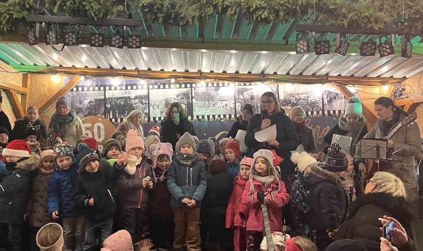 Christkindlmarkt. Mit leuchtenden Augen und guter Laune gaben die Kinder zwei Weihnachtslieder