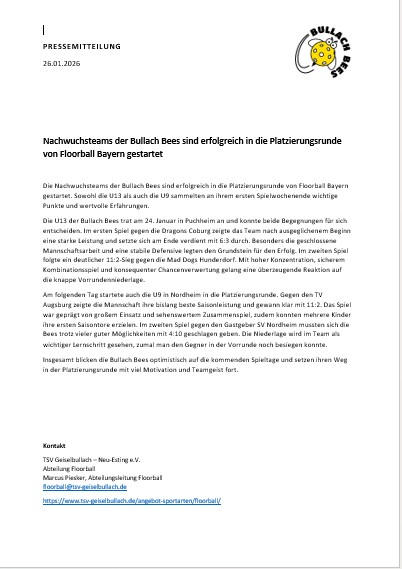 Pressemeldung: Bullach Bees U9 und U13 starten in die Platzierungsrunde