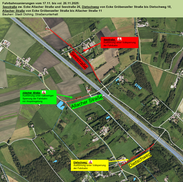 Aufgrund notwendiger Fahrbahnsanierungsarbeiten durch eine von der Stadt Olching beauftragten Tief- und Straßenbaufirma,