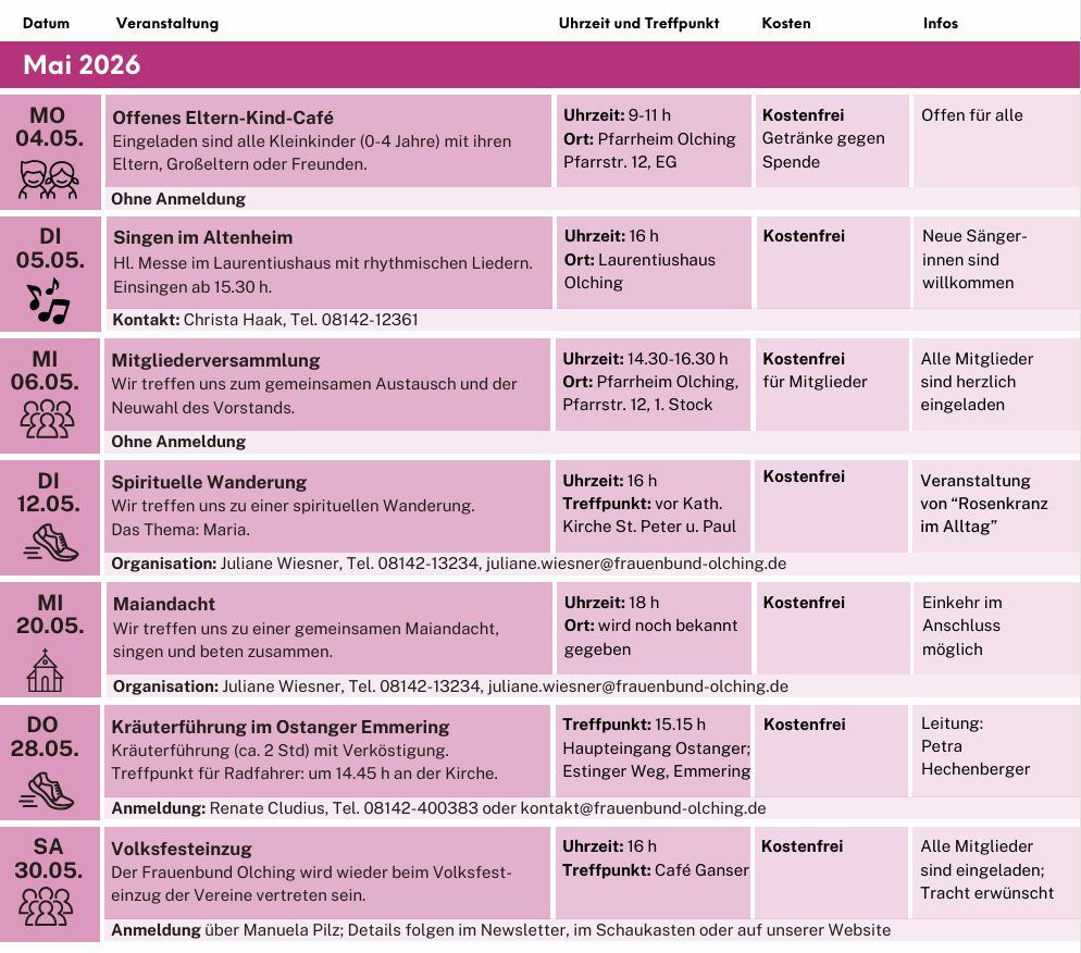Programm Kath. Frauenbund Olching für Mai 2026