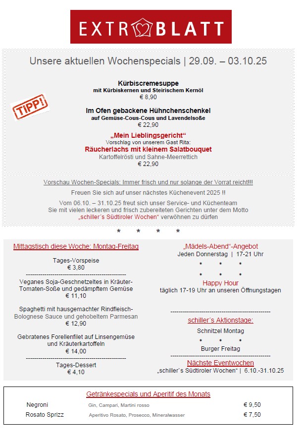 Schillers Extrablatt ab 29.September bis 3.Oktober 2025