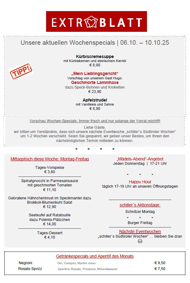 Schiller´s Extrablatt ab dem 6.Oktober bis 10.Oktober 2025