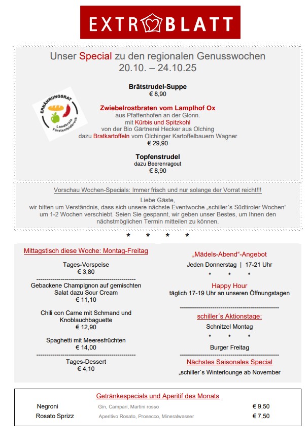 Schiller’s Extrablatt vom 20.10. – 24.10.