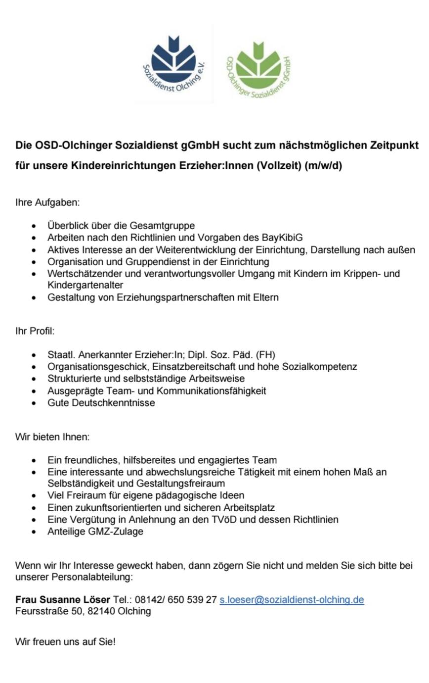 Sozialdienst Olching sucht für Kindergarten und Krippe ..