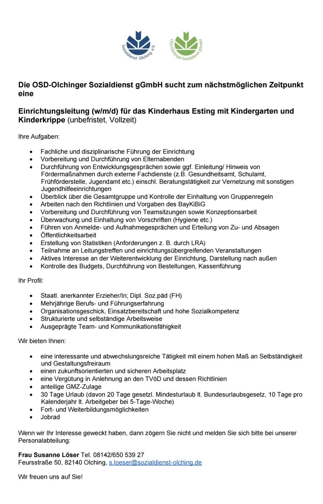 Sozialdienst Olching sucht für Kindergarten und Krippe ..