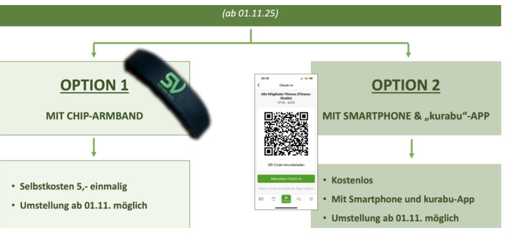 Der Check-In im Fitness-Studio mit der Mitgliedskarte wird ab sofort ersetzt durch zwei Optionen: