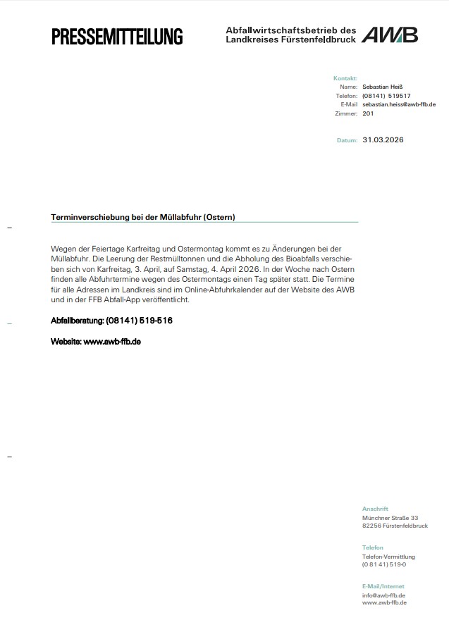 Terminverschiebung bei der Müllabfuhr (Ostern)