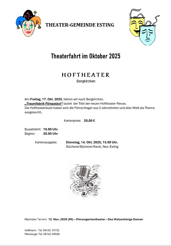 Theaterfahrt der Theatergemeinde Esting im Oktober