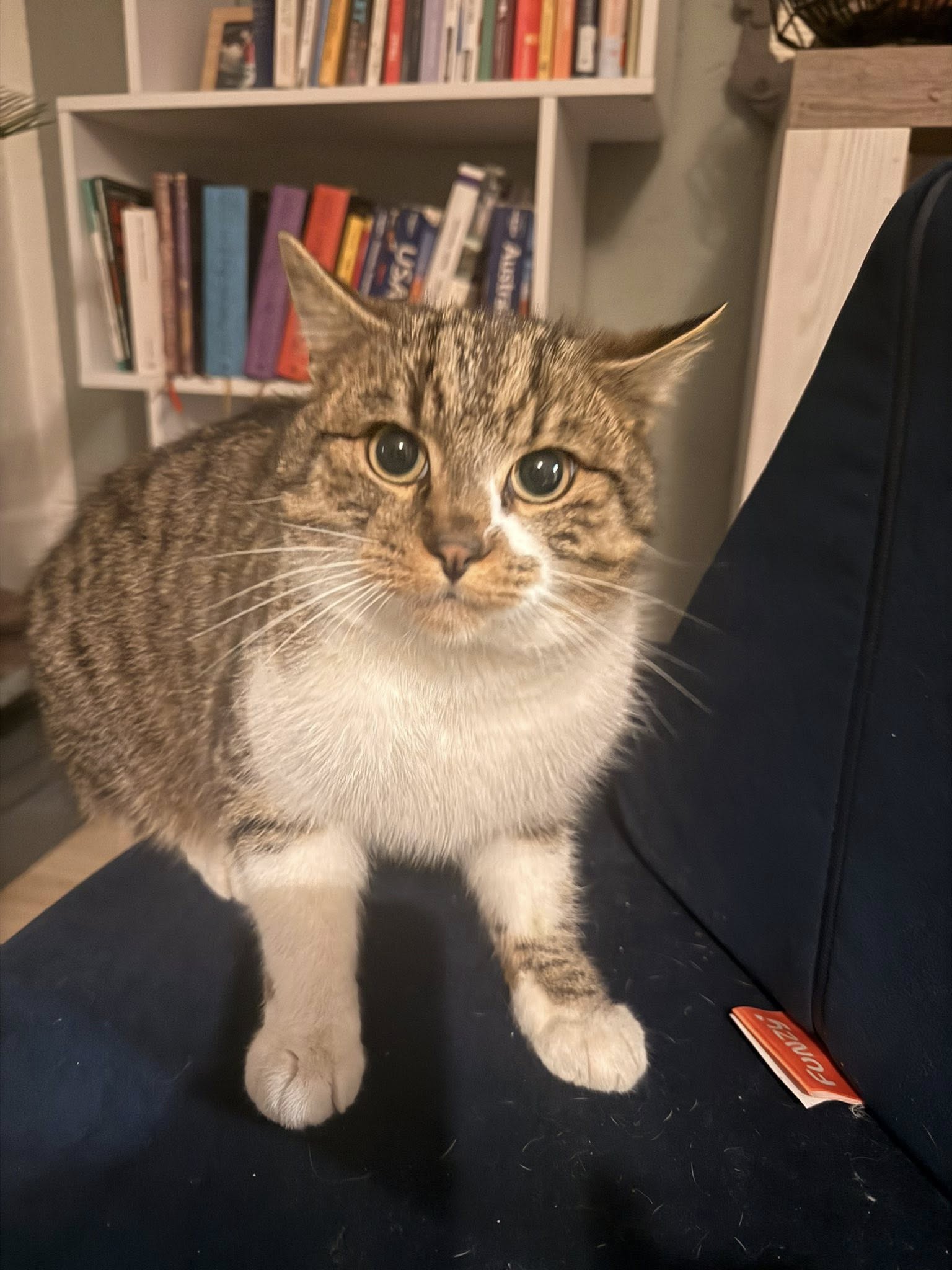 Streunert seit ein paar Wochen bei uns herum. Heute war die Balkontür offen und er kam rein. Ist nicht kastriert. Humpelt ein wenig, ist zutraulich und sieht sehr gepflegt aus.